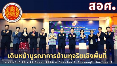 พัฒนาศักยภาพบุคคลากรอาชีวศึกษาในการเขียนแผนการจัดการเรียนรู้บูรณาการหลักสูตรต้านทุจริตศึกษาเพื่อนำไปใช้ในการจัดการเรียนการสอน สำหรับสถานศึกษาอาชีวศึกษาภาครัฐ ภายใต้โครงการเสริมสร้างคุณธรรม จริยธรรม และธรรมาภิบาลในสถานศึกษา ระหว่างวันที่ 23 25 มีนาคม 2566 ณ วิทยาลัยอาชีวศึกษาชลบุรี